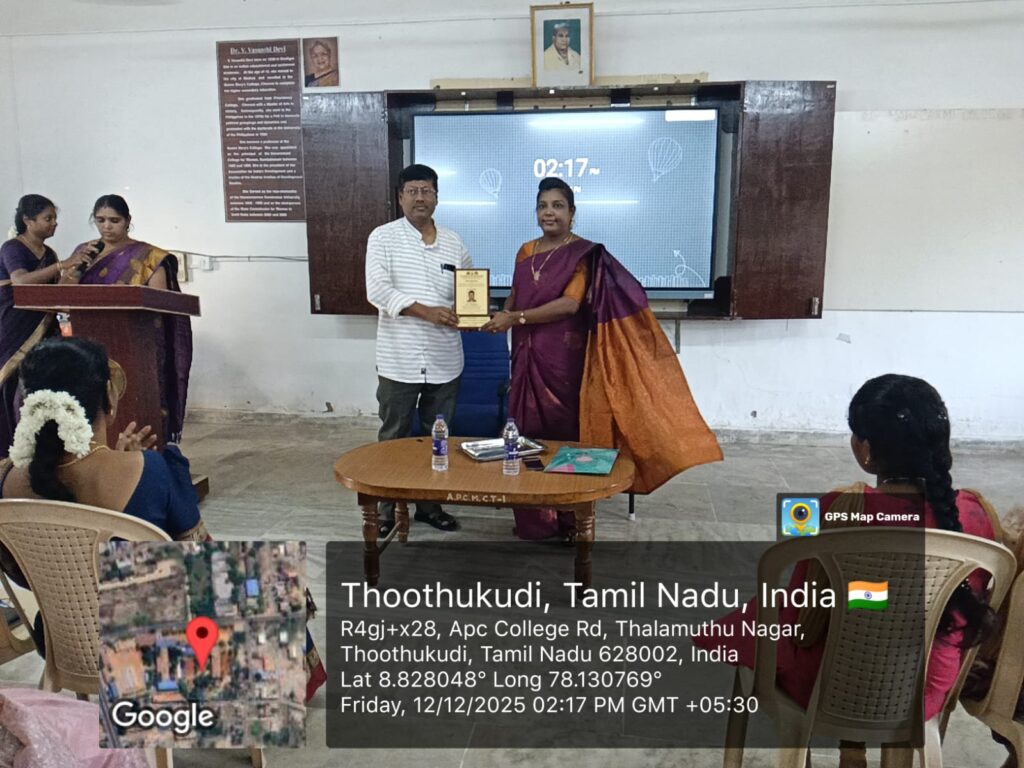 The PG & Research Department of Chemistry, A.P.C. Mahalaxmi College for Women, organized a One-Day Workshop on “Integrating Traditional Knowledge for a Sustainable & Climate Resilient Future” on 12th December 2025 at Dr. Vasanthi Devi Hall.